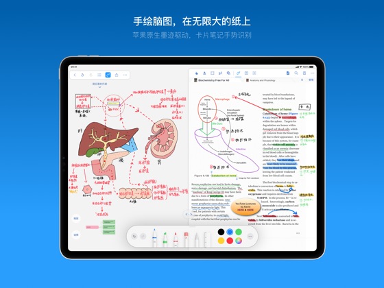 在阅读的过程中,我们最常见的需求就是“划重点”了。这就是 MarginNote 的阅读批注 (读书笔记) 功能,比如我们可以对内容进行荧光笔划线、方框、自由涂鸦等操作。在 iPad 上推荐配合 Apple Pencil 做标注笔记,用起来的体验和效率非常棒。