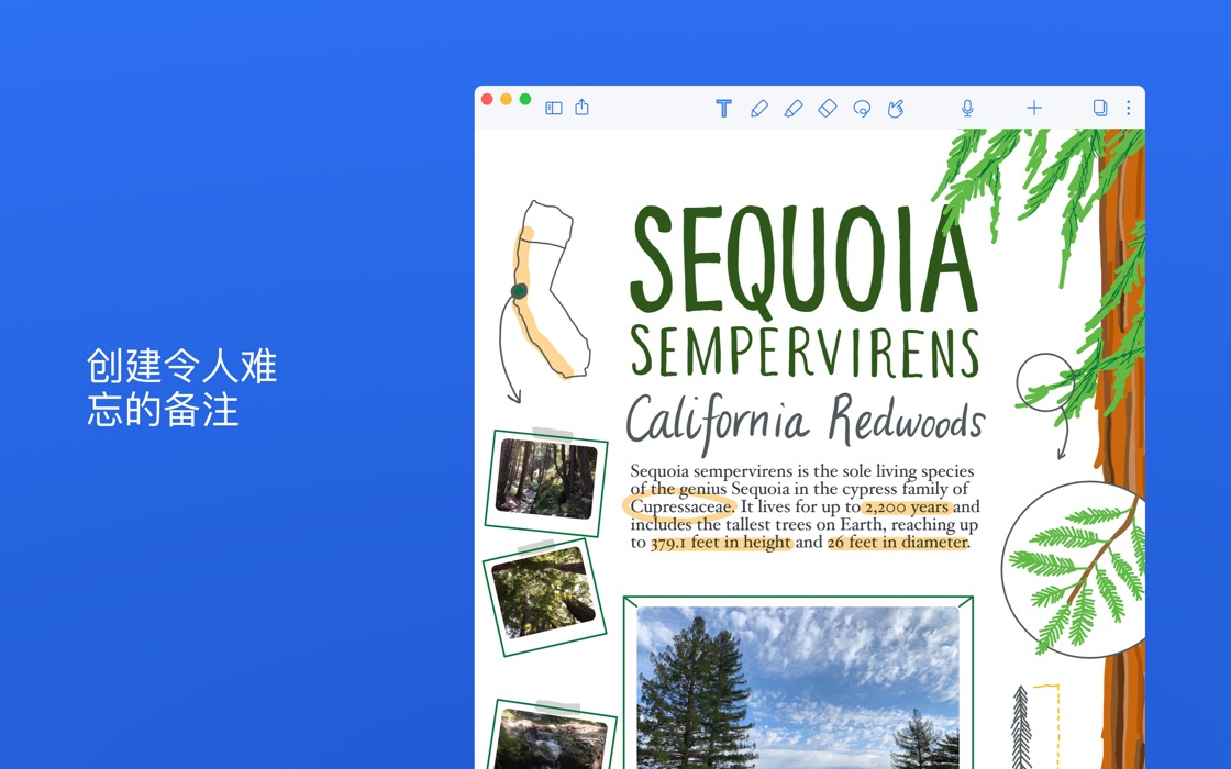 你可以利用 Notability 快速草拟想法、画草图、给照片加描述备注、注释文稿、写日记、签订合同、批注工作表、记录日志、录制演讲、旅行随笔、记录课堂笔记等等。我个人最常用的功能就是拍照后用它来给照片加注释了。